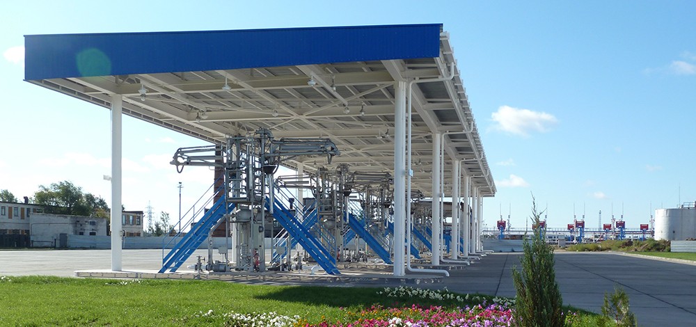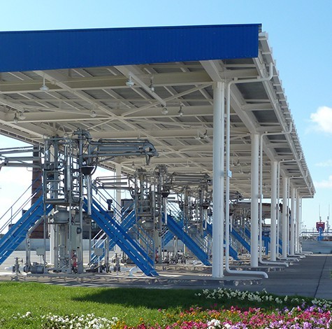 • Terminal za utakanje derivata u auto cisterne sa 6 tocecih mesta. Svako tocece mesto je kompletno opremljeno utakackom opremom I konstrukcijom za opsluzivanje cisterni.